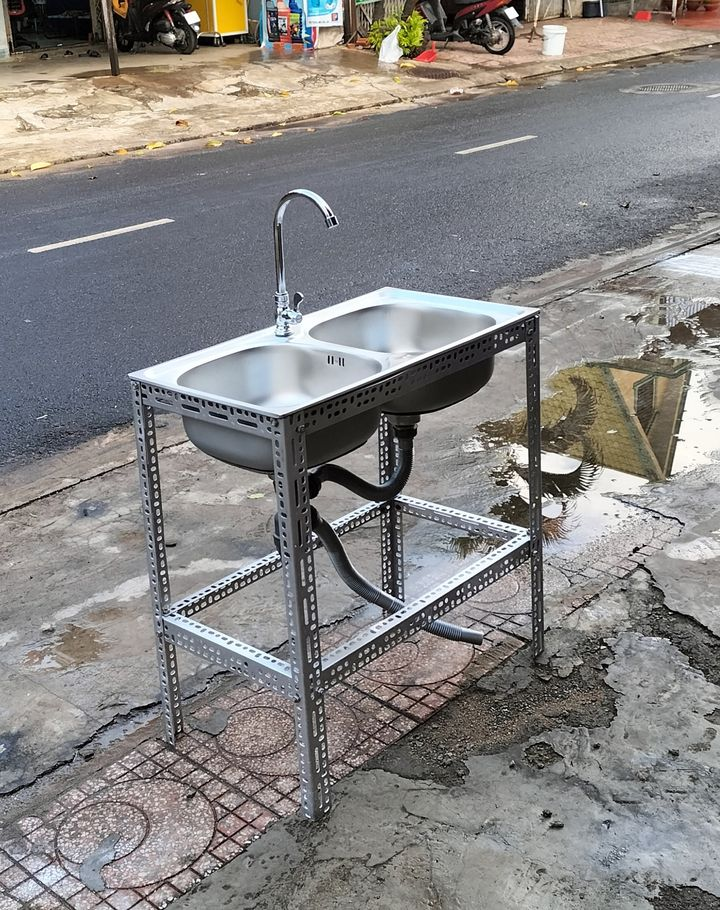 Bồn rửa chén đôi nguyên bộ kèm chân sắt - 850.000đ